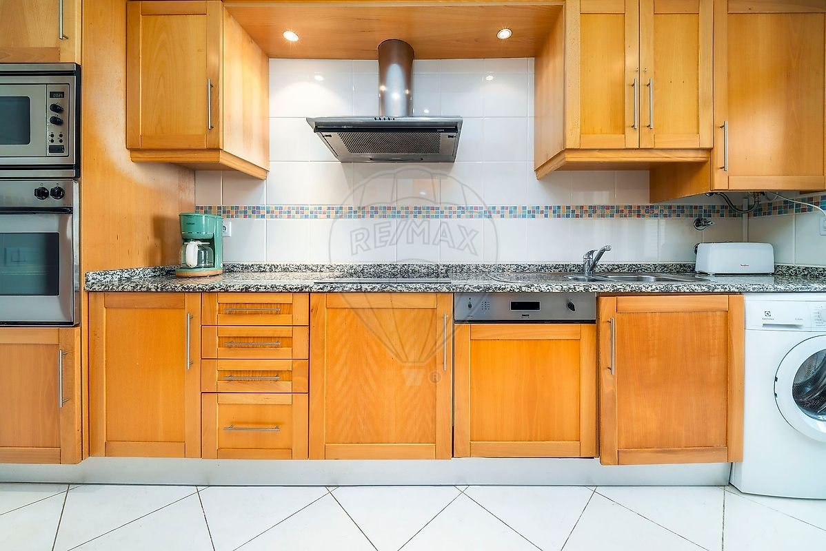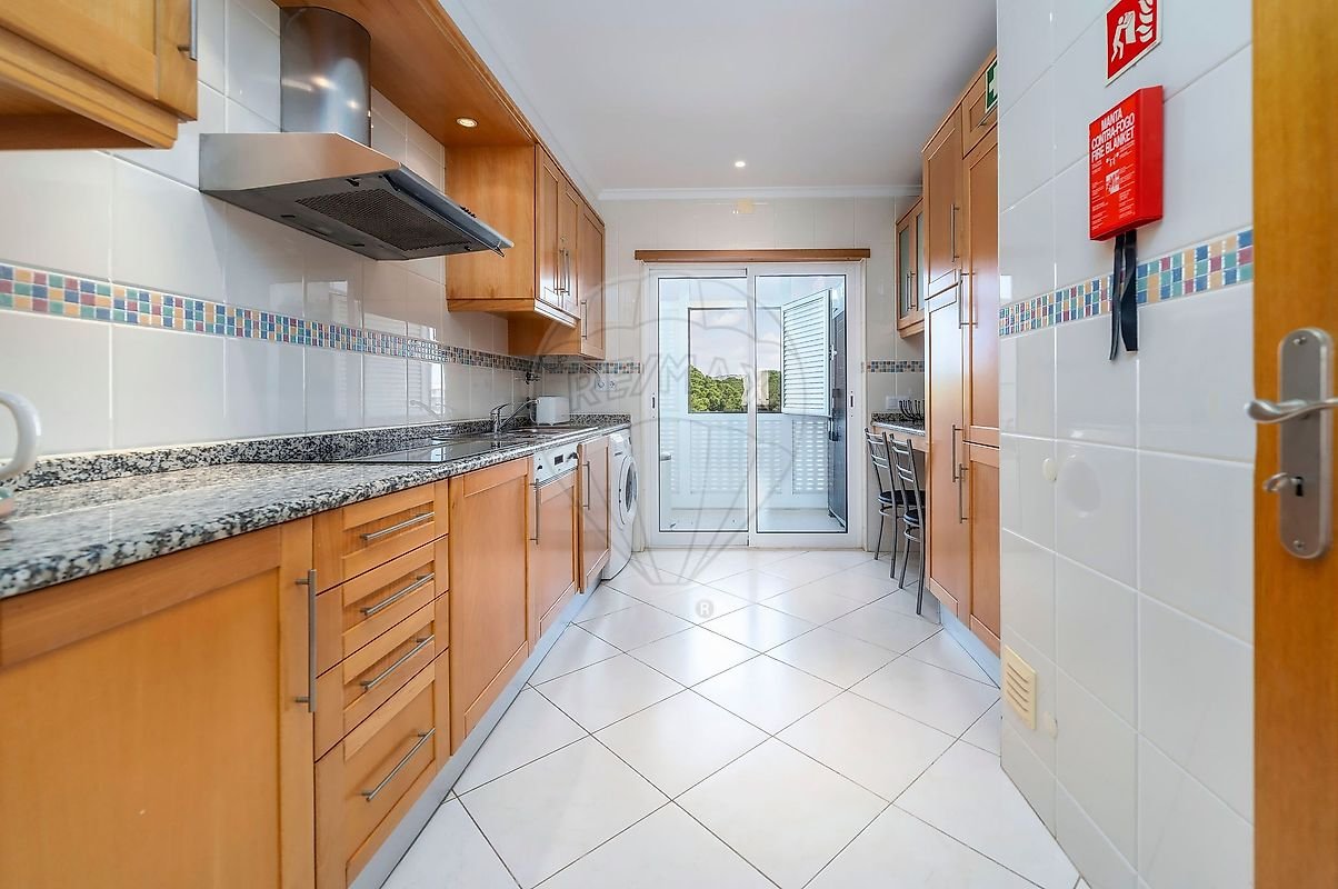 É composto por um quarto em suite mais um outro quarto com casa de banho ao lado, a cozinha é independente e tem uma varanda fechada com lavandaria e arrumos. Tem um amplo salão esta viarado a Sul com uma grande varanda com vista de mar. Dispõe de dois lugares de estacionamento e uma arrecadação.
