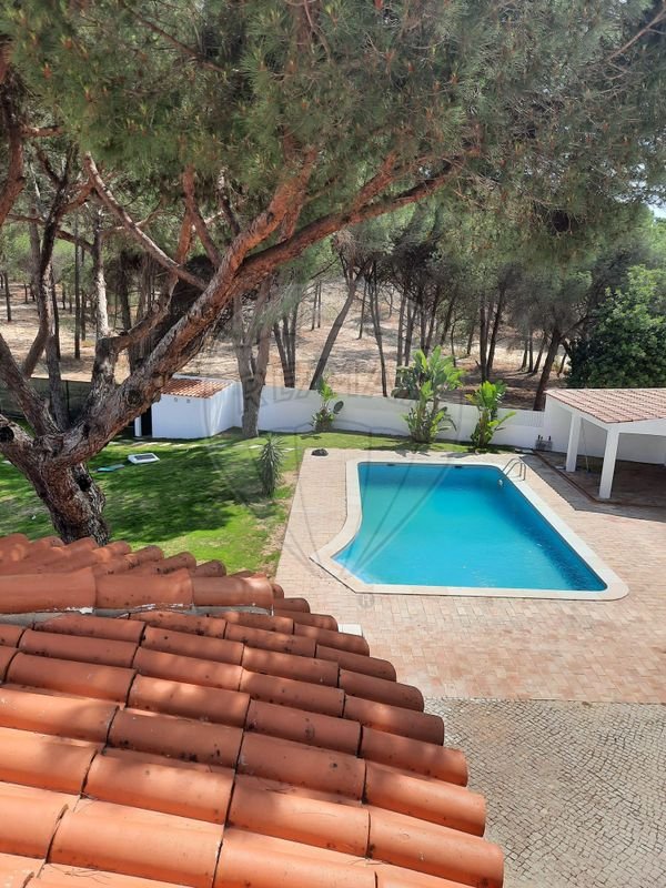 Esta moradia distribuída por dois pisos, dispõe no rés do chão, de ampla sala de estar, com muita luz natural, cozinha equipada, despensa, dois quartos e duas casas de banho. No piso superior, conta com três quartos em suite e amplo terraço com vista para a piscina, jardim e a natureza envolvente.