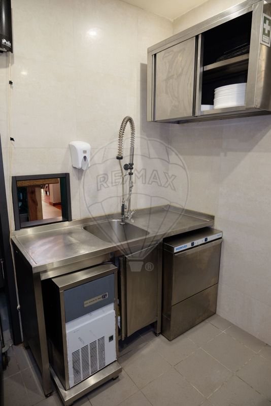 Possui cozinha de dimensões generosas, despensa e dois modernos WC. Incluído no arrendamento estará todo o equipamento necessário ao funcionamento imediato do espaço: máquinas frigoríficas, o fogão industrial, grelhador, fritadeiras, máquinas de cerveja, de café, gelo, de lavar, utensílios e outros electrodomésticos.