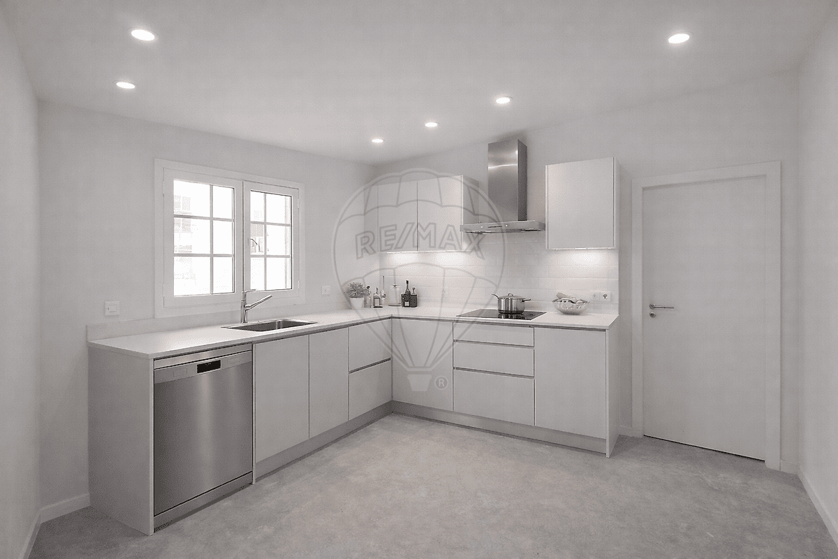Apartamento situado no 1.º andar de prédio totalmente remodelado, com renovação integral de canalização, eletricidade e telhado.