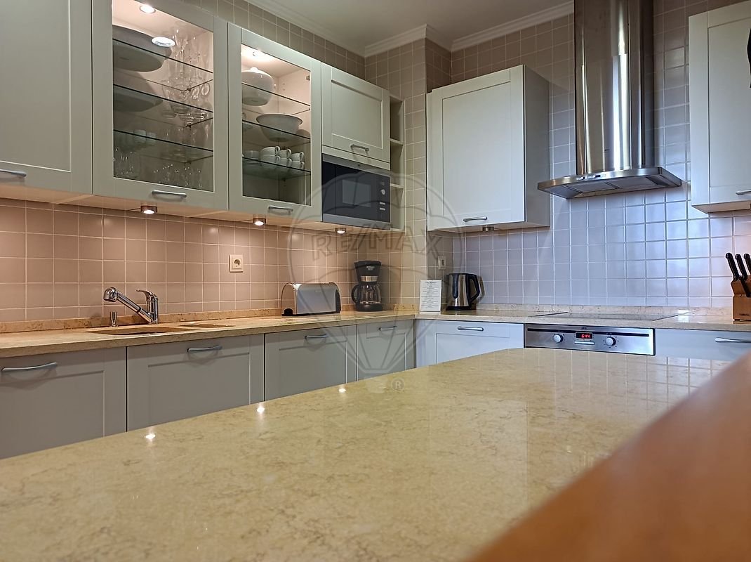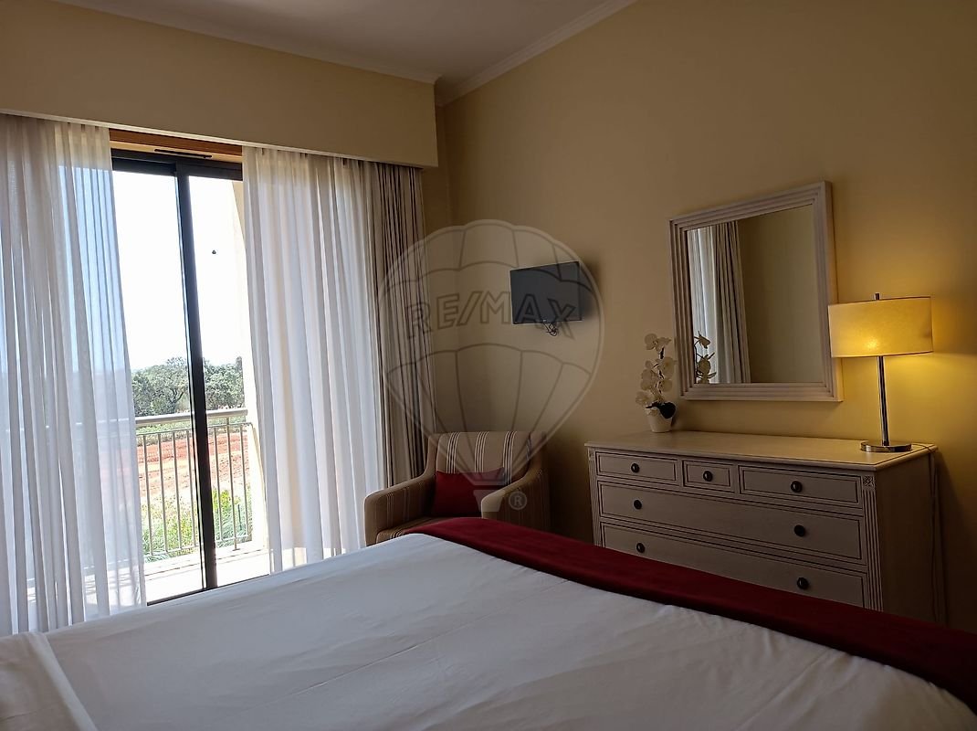 2 Quartos, sendo um deles em suite. Esta dispõe de uma varanda privativa com vista golfe. Dispomos ainda de mais uma casa de banho comum, para uso do segundo quarto e perfeita para os convidados. A cozinha totalmente equipada tem acesso a um