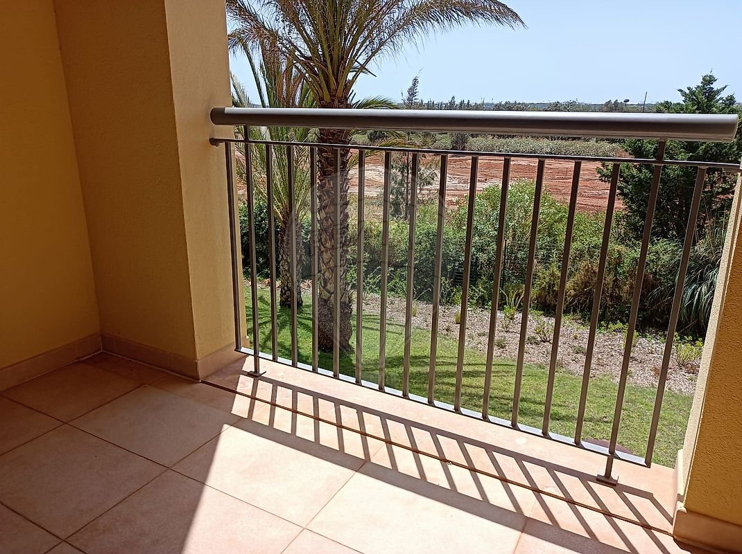 Situado no primeiro andar, num bloco ligeiramente afastado das zonas comuns, o apartamento desfruta de vista golfe pois está de frente para o prestigiado campo de golfe Vitoria, que está neste momento a ser redesenhado.