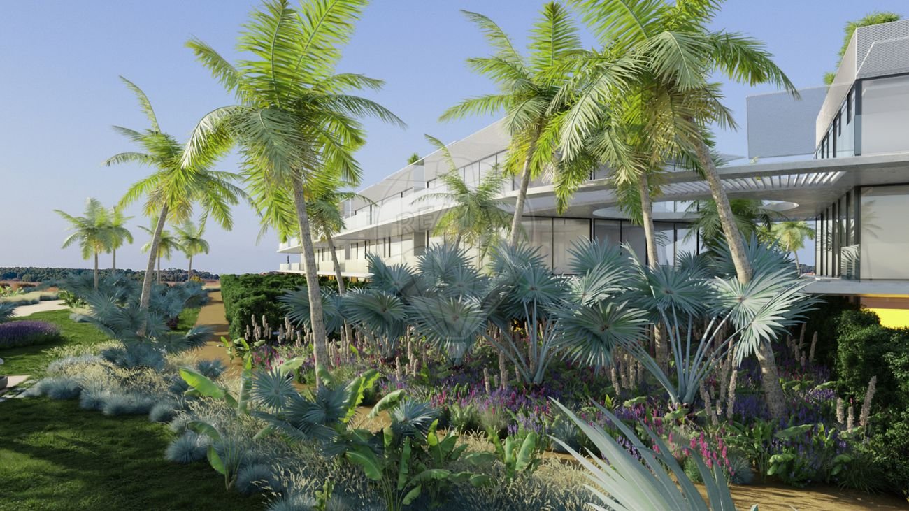 Os apartamentos de RC têm jardins privados na frente e nas traseiras, sendo que os de tipologia T3 têm a sua própria piscina infinita com boas dimensões. Os primeiros andares, têm varandas enormes e com vistas sobre o próprio empreendimento, assim como do Golfe e o mar ao fundo.