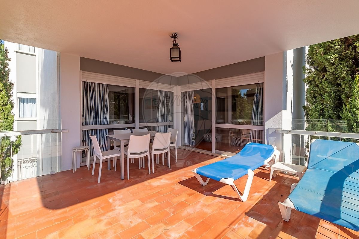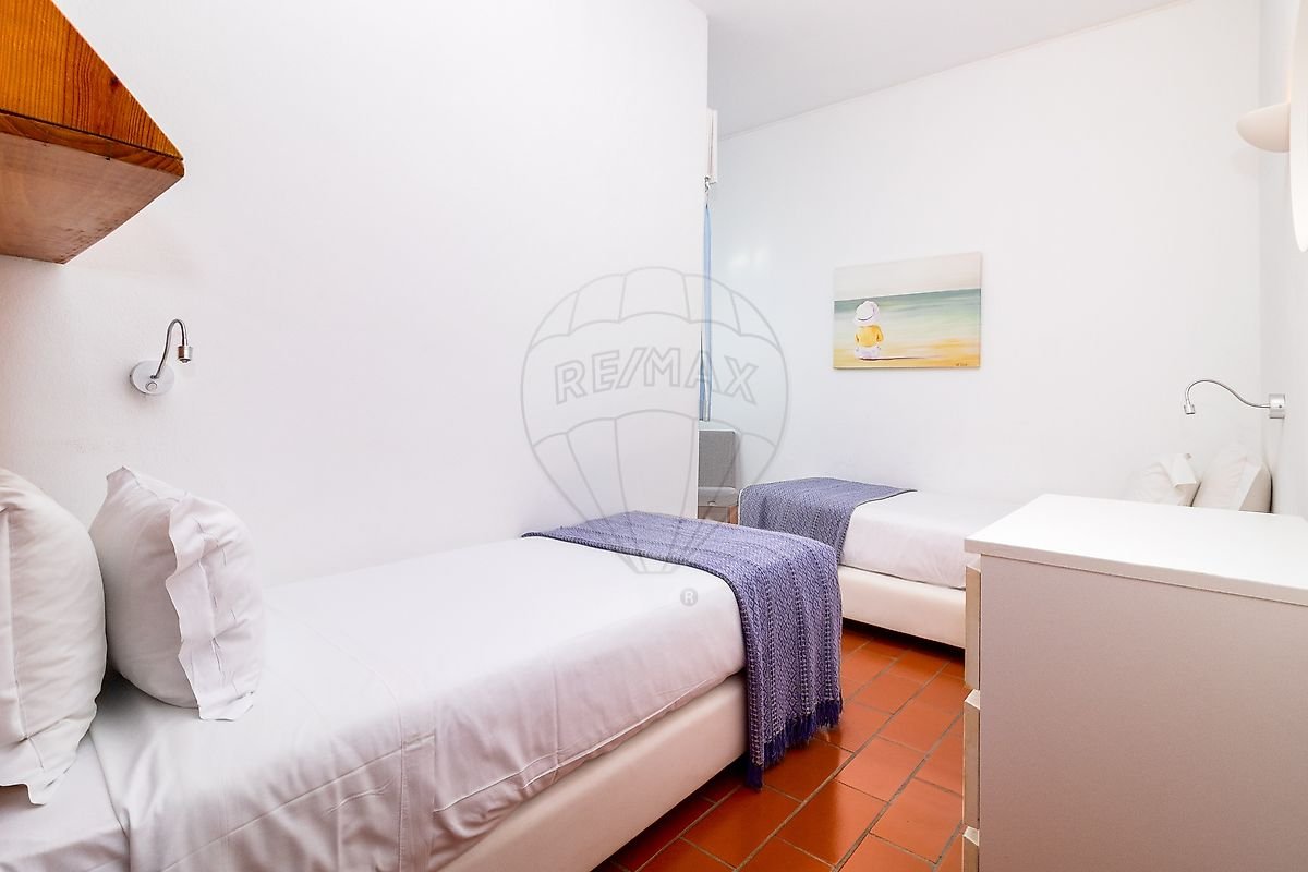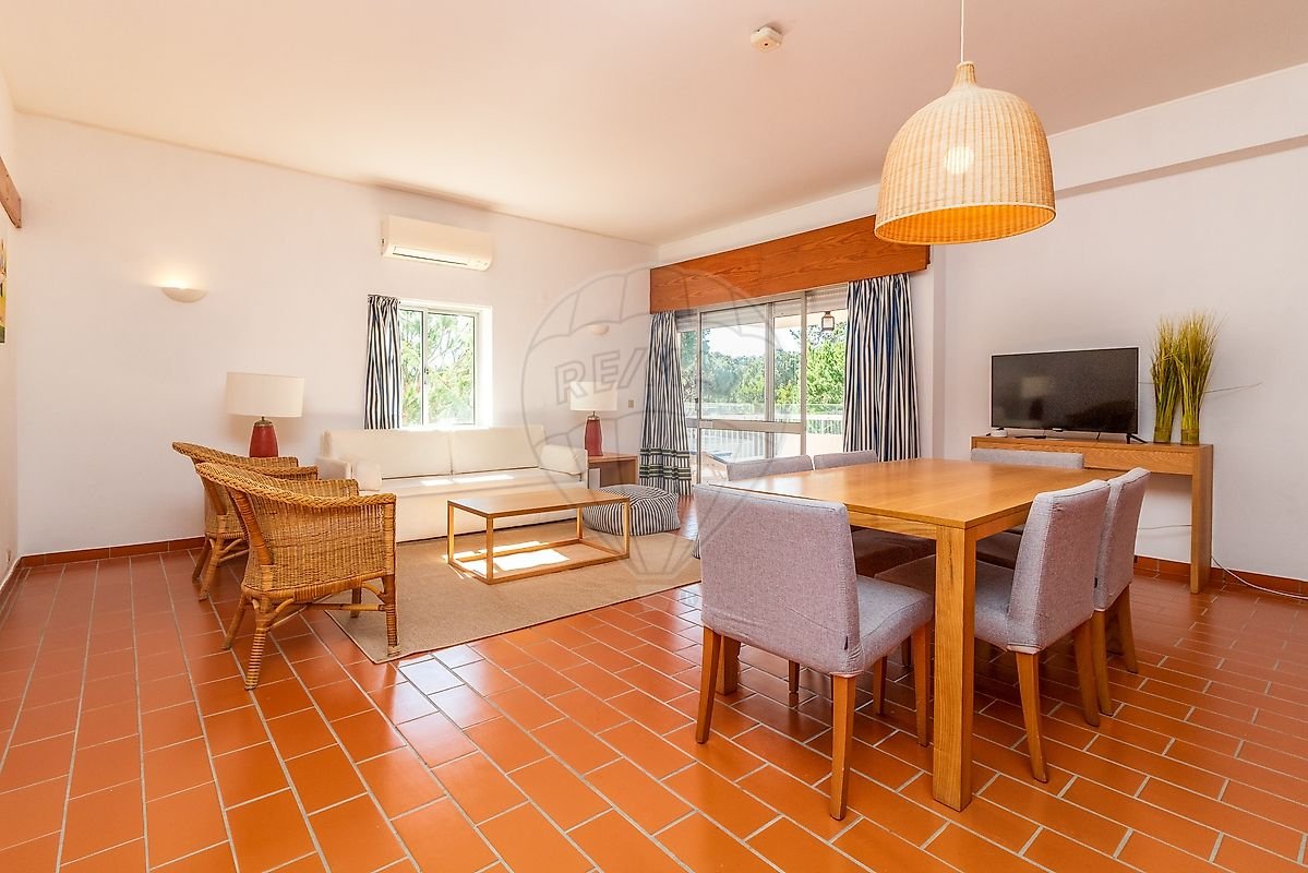 Com uma varanda generosa, poderá desfrutar de agradáveis vistas para um amplo jardim cuidado, onde se inserem duas piscinas para adultos e uma piscina dedicada às crianças. O condomínio oferece ainda excelentes comodidades, como campo de ténis e área para prática de petanca, proporcionando momentos de lazer para toda a família.