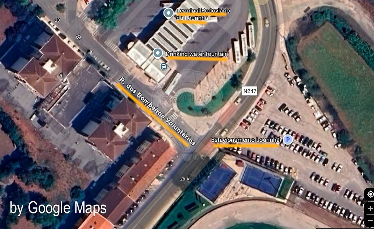 Frente à rodoviária da Lourinhã, perto de todo o tipo de comércio e serviços, com espaço para estacionamento público na rua em frente.