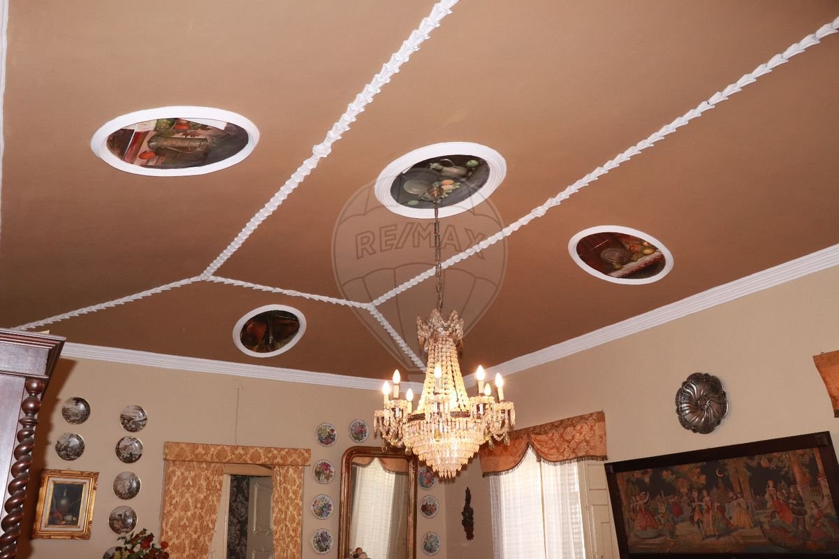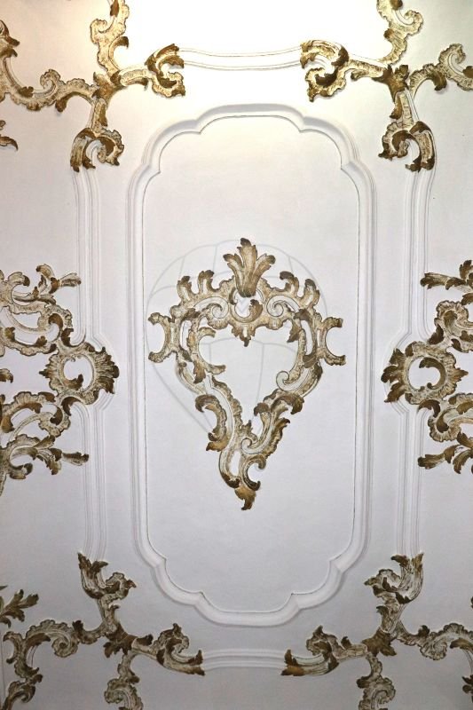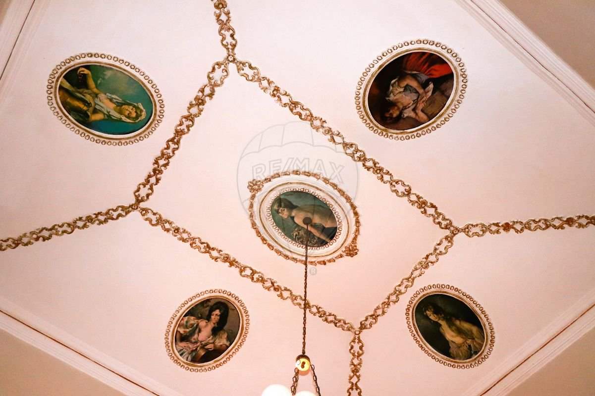 Tectos únicos, trabalhados manualmente, em gesso. Divisões com pé direito de 3 a 6 metros.