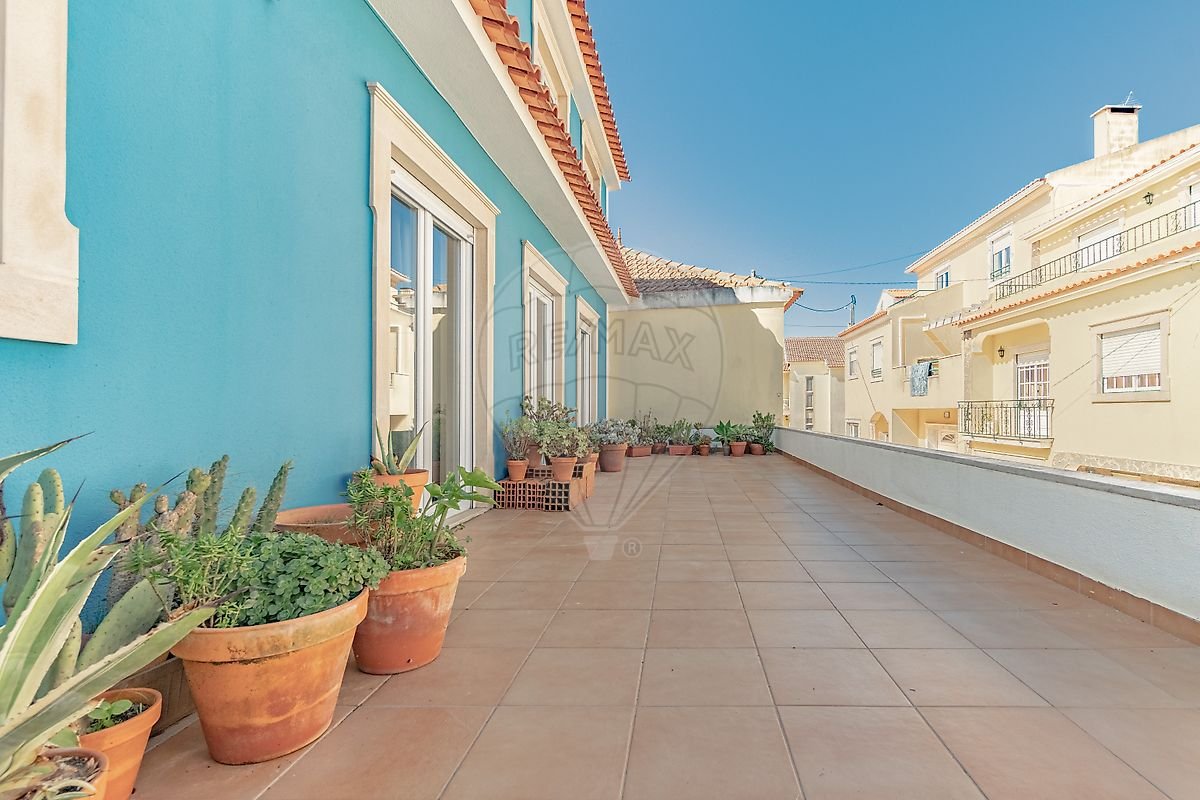 Piso 1: Sala ampla e luminosa com 3 portas francesas de acesso ao terraço de 31 m², cozinha com despensa e saída para um segundo terraço de 21 m², 2 quartos com excelente luminosidade e uma casa de banho comum.