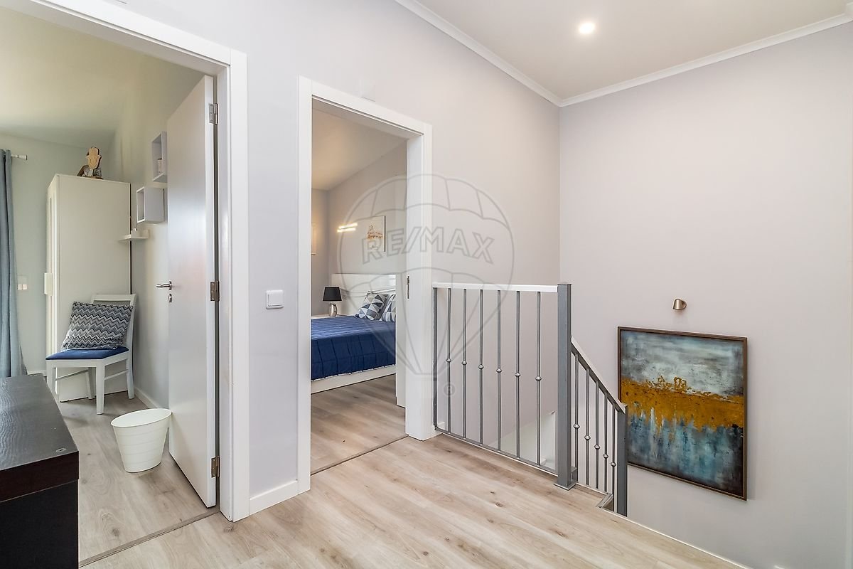 No rés do chão, a zona social destaca-se pela sua abundante luz natural, criando um ambiente harmonioso e convidativo, com ligação direta ao espaço exterior, perfeito para momentos de lazer e convívio. A sala dispõe ainda de lareira, ideal para criar um ambiente acolhedor nos meses mais frescos. A cozinha encontra-se totalmente equipada e a moradia dispõe ainda de duas despensas, elementos essenciais para uma melhor organização e arrumação do dia a dia. Conta ainda com estores elétricos, garantindo maior conforto e praticidade no quotidiano.