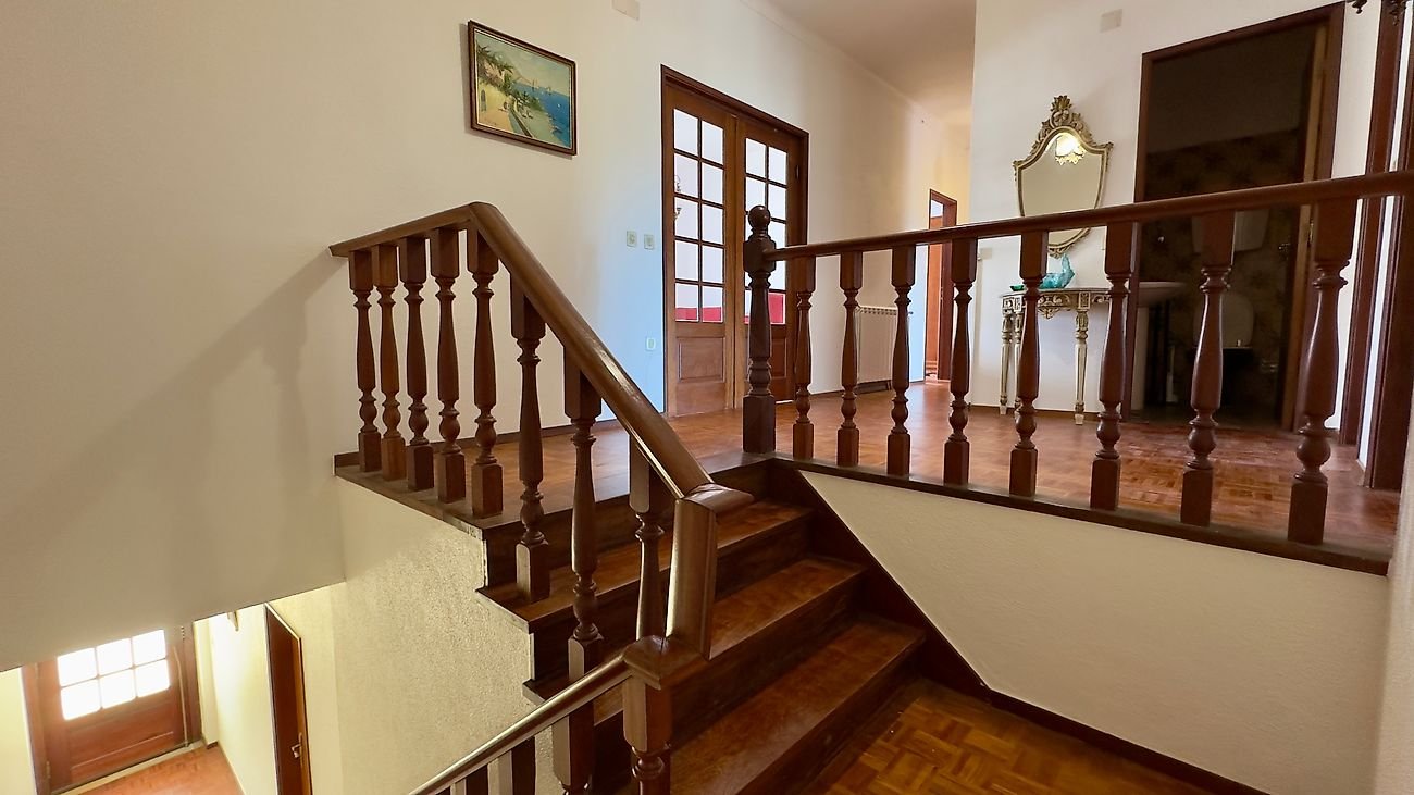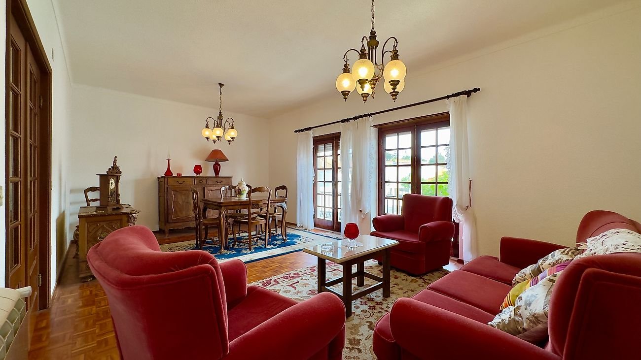 Dispõe de 3 quartos, duas cozinhas e estacionamento na cave, também com vista desafogada, na parte traseira.
