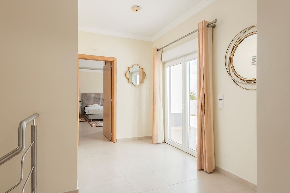 Esta magnífica propriedade combina sofisticação, conforto e privacidade, proporcionando uma experiência única de habitação no coração do Algarve. Ao entrar, somos recebidos por uma espaçosa e elegante sala de estar com amplas janelas que oferecem uma vista deslumbrante para o exterior, onde se encontra uma magnífica piscina rodeada por jardins exuberantes e uma convidativa área de lazer. A lareira de dupla face confere um toque acolhedor tanto à sala como à cozinha, totalmente equipada e integrada a uma charmosa zona de refeições interiores. No piso térreo, encontram-se dois quartos espaçosos e uma casa de banho de serviço, garantindo conforto e praticidade. Descendo ao piso inferior, a propriedade dispõe de uma ampla garagem fechada com capacidade para quatro viaturas, além de um escritório funcional e uma casa de banho adicional. No piso superior, dois amplos quartos garantem uma experiência de luxo, ambos com walk-in closet. Um deles é uma elegante suíte, e ambos partilham uma generosa varanda com vista panorâmica sobre os jardins e a piscina. O espaço exterior é um verdadeiro refúgio, com uma fantástica área de BBQ, perfeitos jardins que envolvem a propriedade e uma atmosfera de tranquilidade absoluta. Localizada numa zona calma, às portas de Vilamoura, esta moradia está a apenas alguns minutos dos mais prestigiados campos de golfe, das deslumbrantes praias e da icónica Marina de Vilamoura.