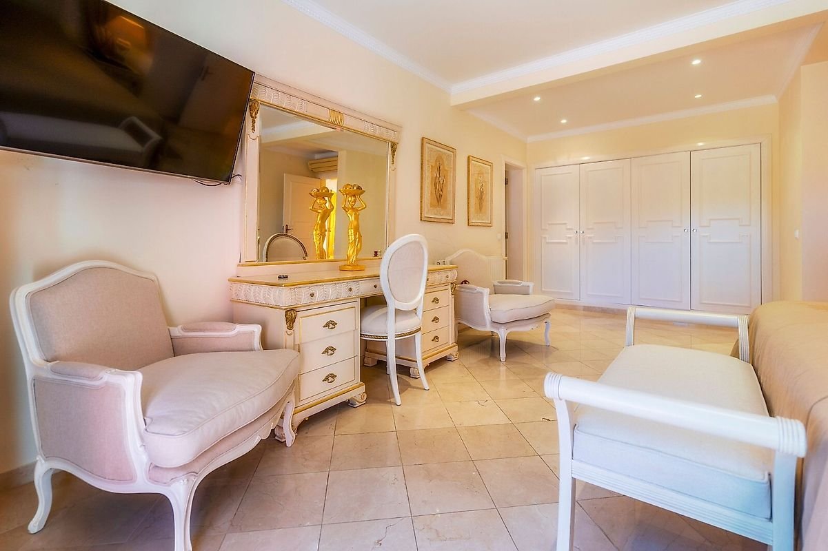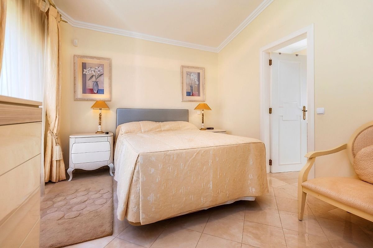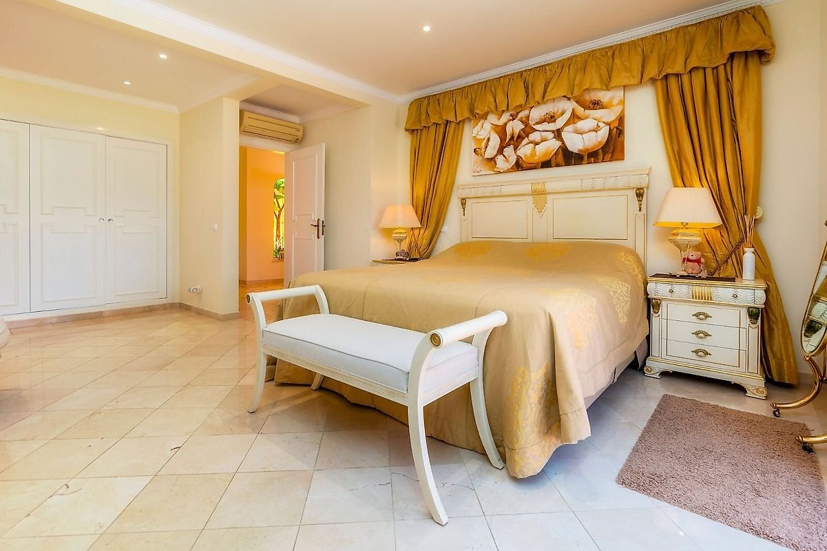 Esta fabulosa moradia esta situada em zona calma e priveligiada, vistas para o golfe, com 4 quartos em suite mais WC de serviço, cozinha, sala de jantar, sala comum e sala de relax, lavandaria, arrecadaçao, garagem, logradouro e solarium com vistas para a piscina e terreno de golfe.