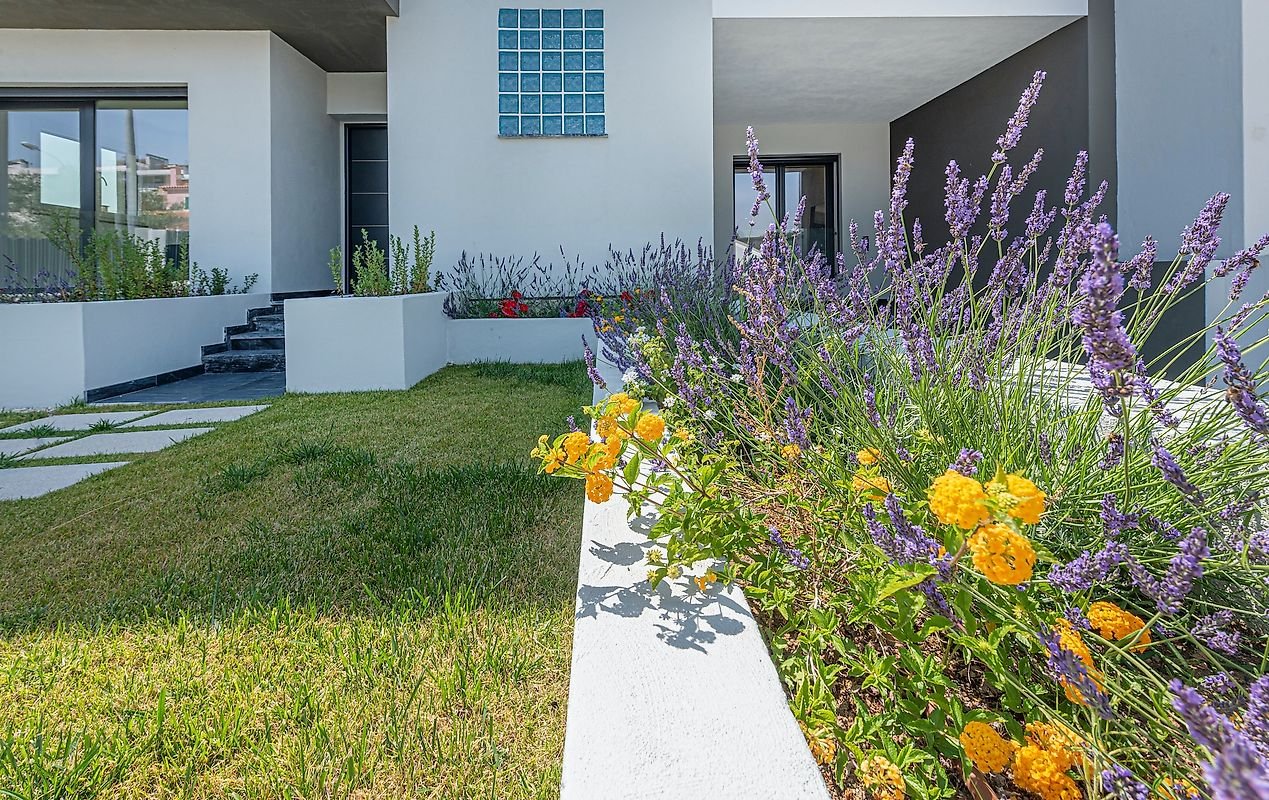 No jardim, a piscina reflete o céu e convida a momentos de descontração e lazer, rodeada por um ambiente verde que transmite paz e privacidade. A exposição solar Sul/Poente garante dias luminosos e pores do sol inesquecíveis, enquanto a proximidade a uma zona verde de condomínio privado assegura tranquilidade e exclusividade.