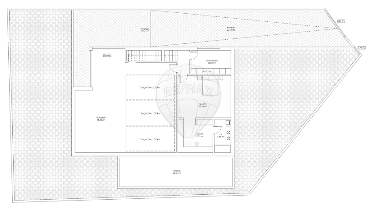 * No piso inferior, a moradia dispõe de uma garagem com cerca de 133 m², com