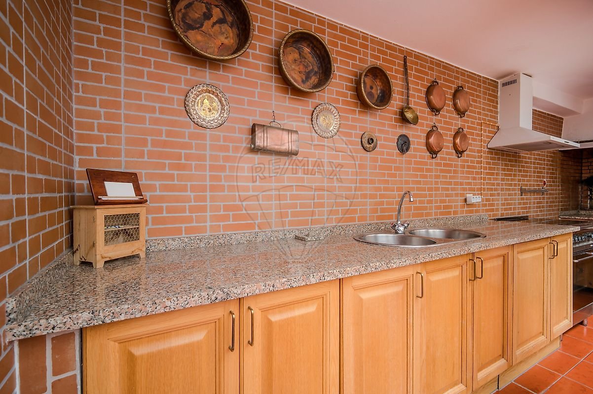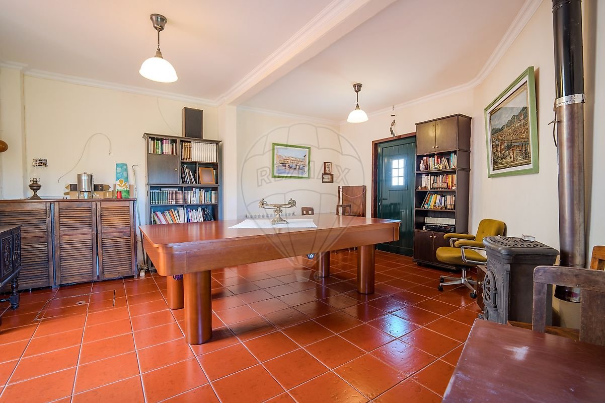 A moradia é composta por 5 quartos, sendo um deles suíte, sala de jantar, sala de estar e sala de jogos, 2 cozinhas, 3 casas de banho completas e uma de serviço.