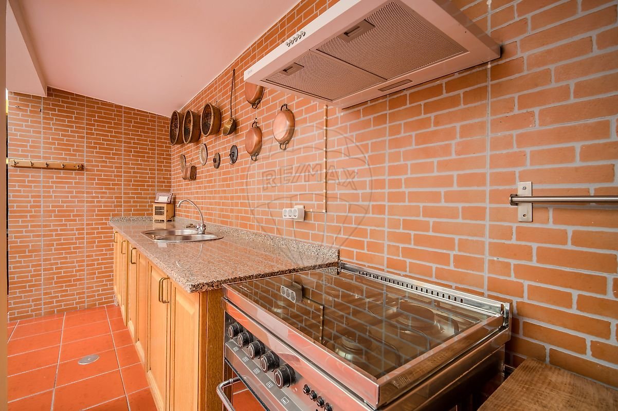 Temos ainda um terraço no primeiro piso onde podemos apreciar uma vista deslumbrante, com solário, churrasqueira e painel solar para água quente.