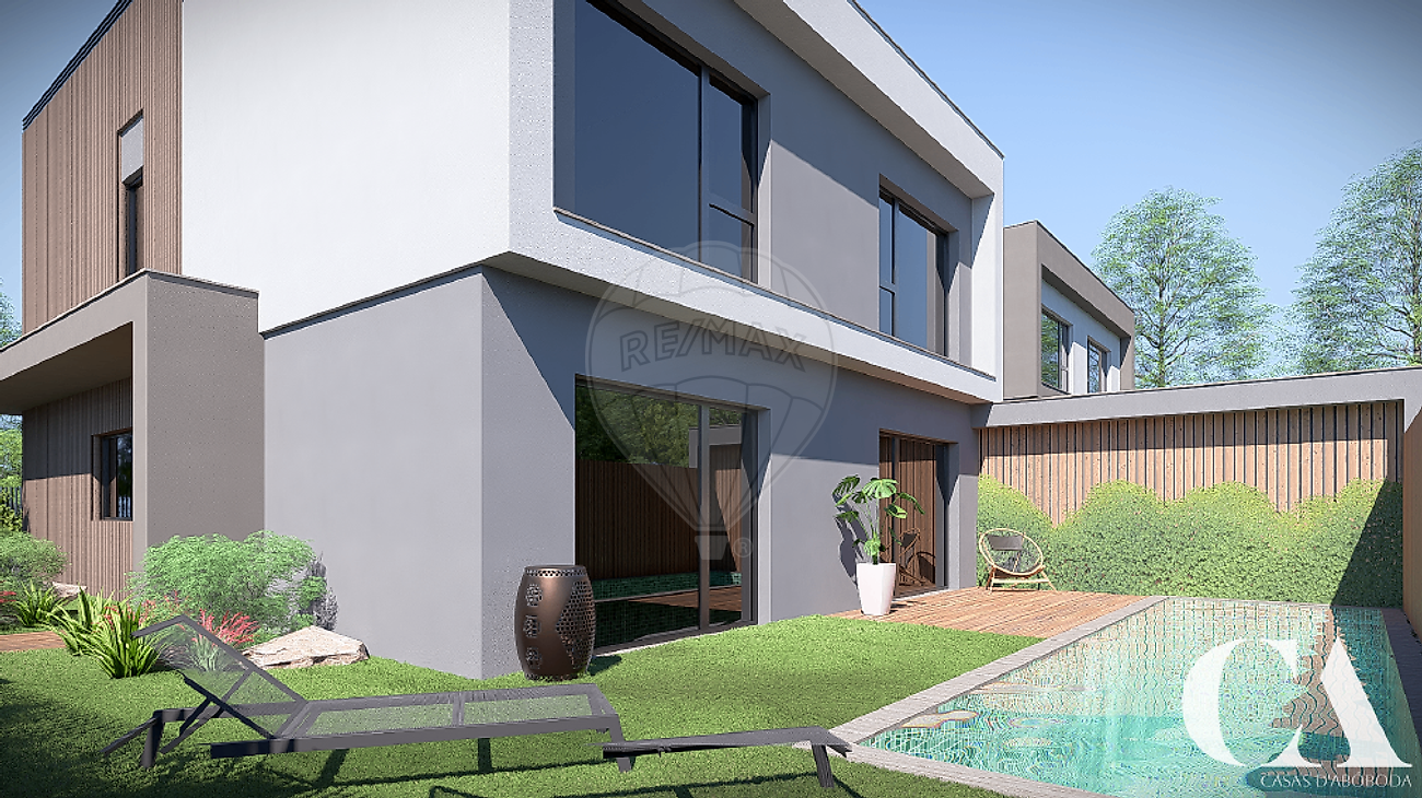 We present this contemporary 4+1 bedroom house with a pool, situated on a 318 m² plot, located in a quiet residential area of ​​Abóboda, in São Domingos de Rana, just minutes from Cascais, the A5 motorway, and the main beaches of the coast.