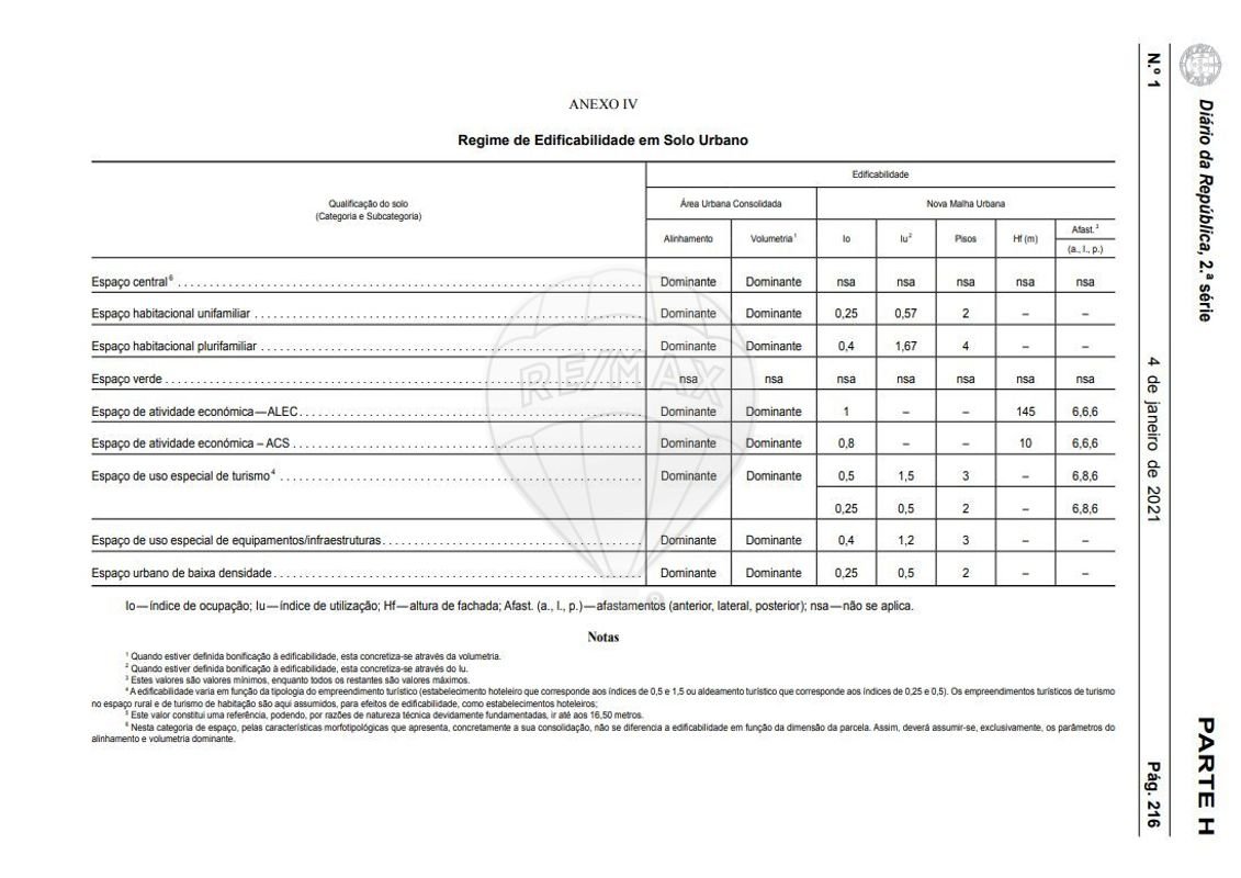 Relativamente à viabilidade de construção para esta parcela de terreno é de 25% conforme tabela identificada na imagem 3.