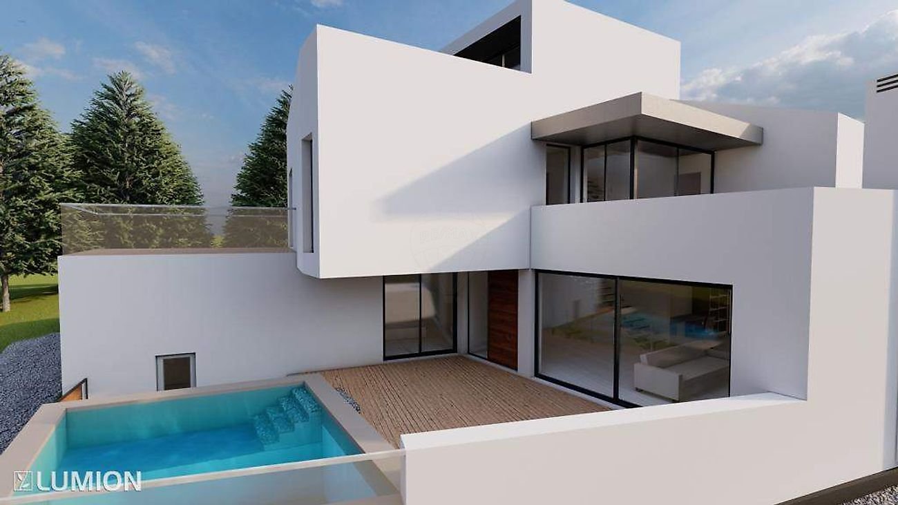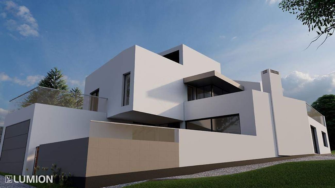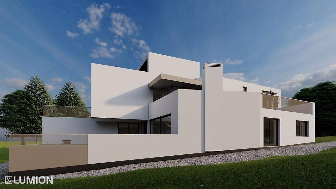 Projecto em fase de aprovação na Câmara Municipal de Loulé para construção e moradia moderna com 3 quartos, todos em suite, Cozinha, Lavandaria, sala de estar, sala de jantar, Garagem e piscina. Na Cave tem mais uma enorme zona de estar, arrumos e duas casas de banho.