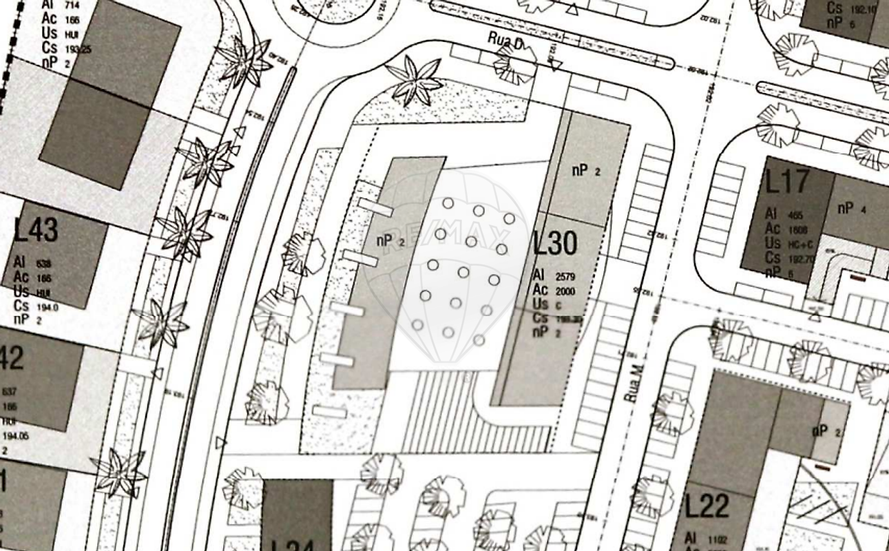 O terreno apresenta áreas generosas, permitindo uma implantação ampla e uma vasta zona de estacionamento, fundamental para a atratividade e funcionalidade do espaço comercial.