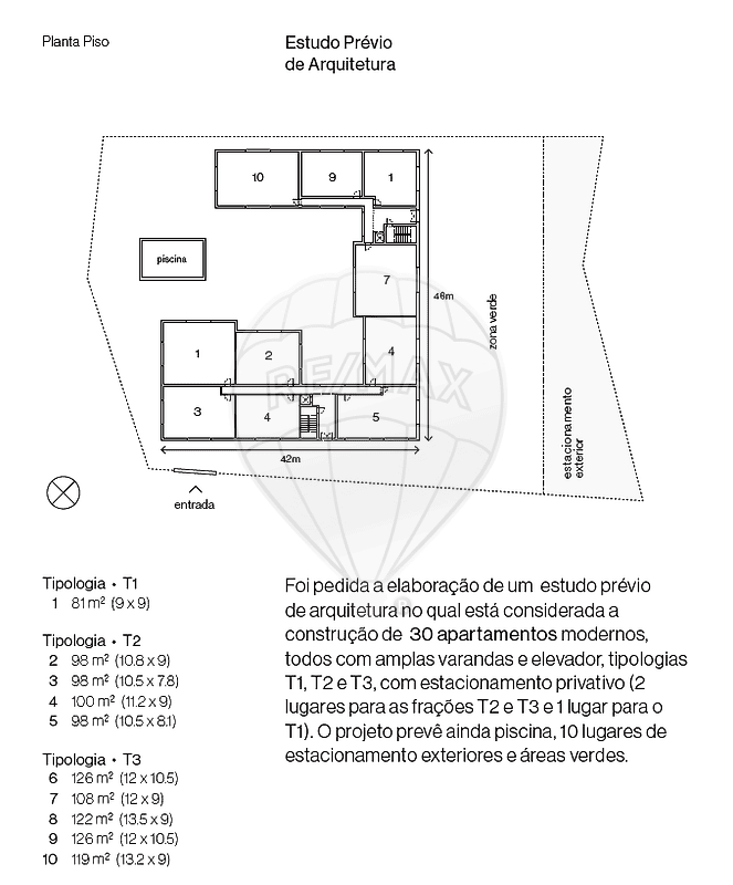 • Nº de Pisos: 2 pisos + 1 recuado e piso subterrâneo para estacionamento e arrecadações.