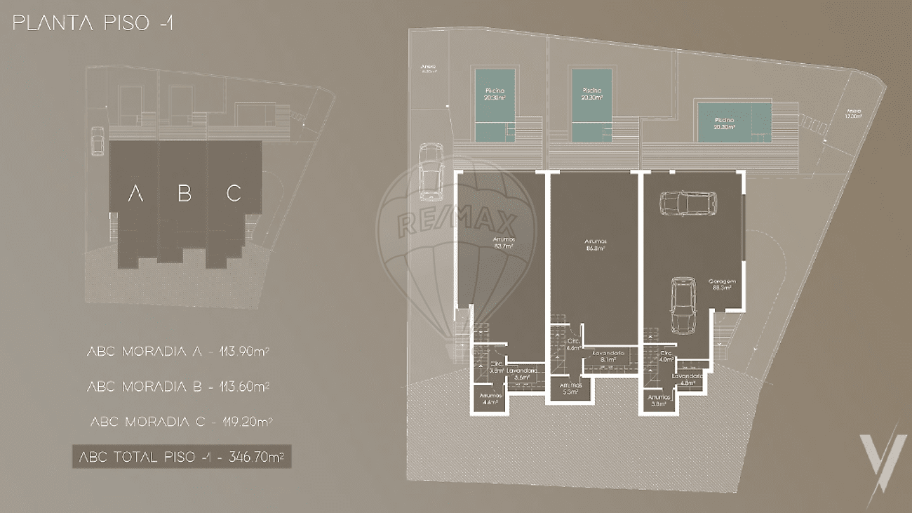 Excelente oportunidade de investimento em Manique, com terreno urbano de 1.092 m² e projeto aprovado para condomínio privado de 3 moradias independentes, cada uma com piscina privativa.