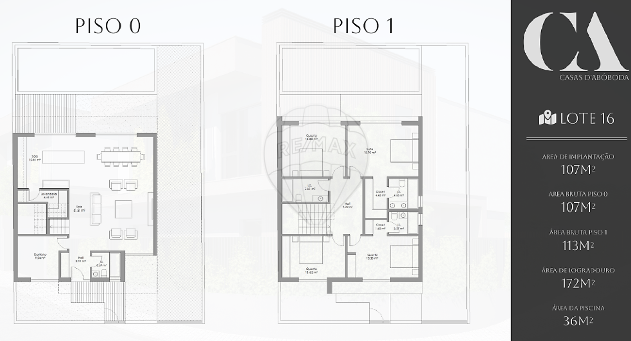Lote de terreno com 279 m² vendido com projeto para moradia contemporânea T4+1, distribuída por 2 pisos, jardim e piscina privativa.
